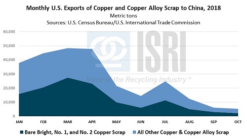 While copper and copper alloy scrap shipments to China are down 55% by volume so far this year, gains to Malaysia, South Korea, Japan, India, Thailand, and others helped to offset the reduction in shipments to mainland China. Of note, there is a nice new
